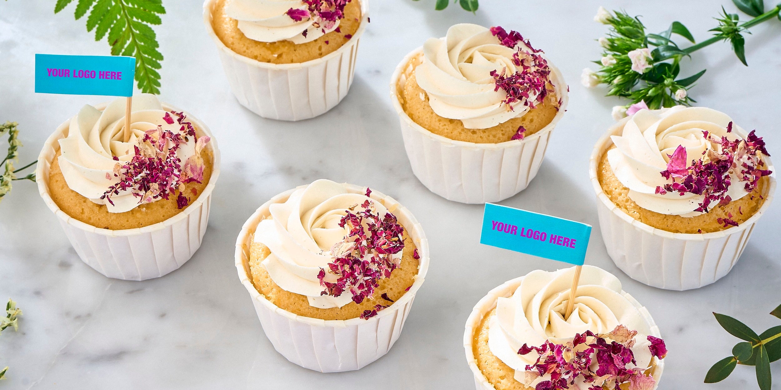 Add a personal touch to sharing platters and bakery products with small flags displaying your logo or message.