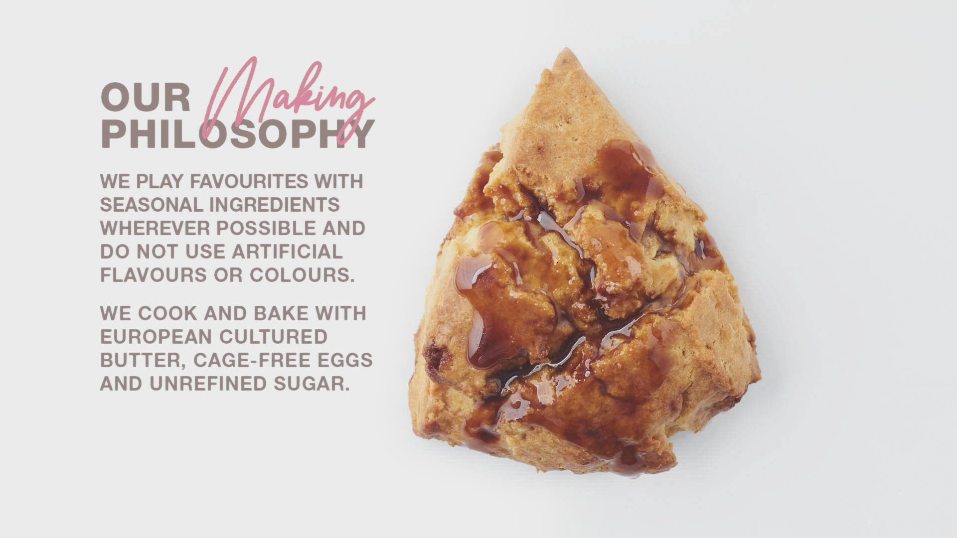We play favourites with seasonal ingredients wherever possible and we do not use artificial flavours or colours. We cook and bake with European cultured butter, cage-free eggs and unrefined sugar.